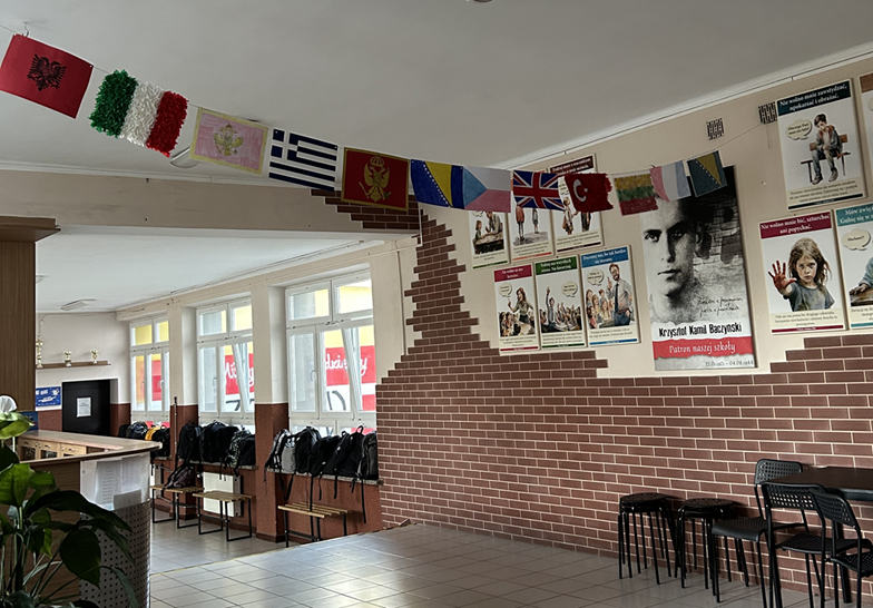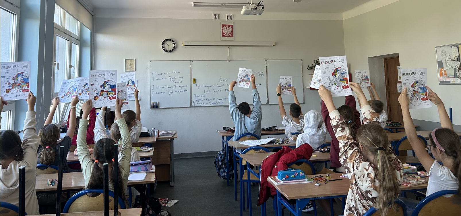 W dniu 26 września obchodziliśmy Europejski Dzień Języków Obcych. Chętni uczniowie klas 4 przygotowali flagi, które zostały wywieszone w holu, a pozostałe klasy losowały jeden kraj, w którego języku należało przygotować 10 wyrazów lub zwrotów i zawiesić je w swojej sali klasowej. W tym dniu zostały również przeprowadzone lekcje tematyczne na zajęciach języków obcych.